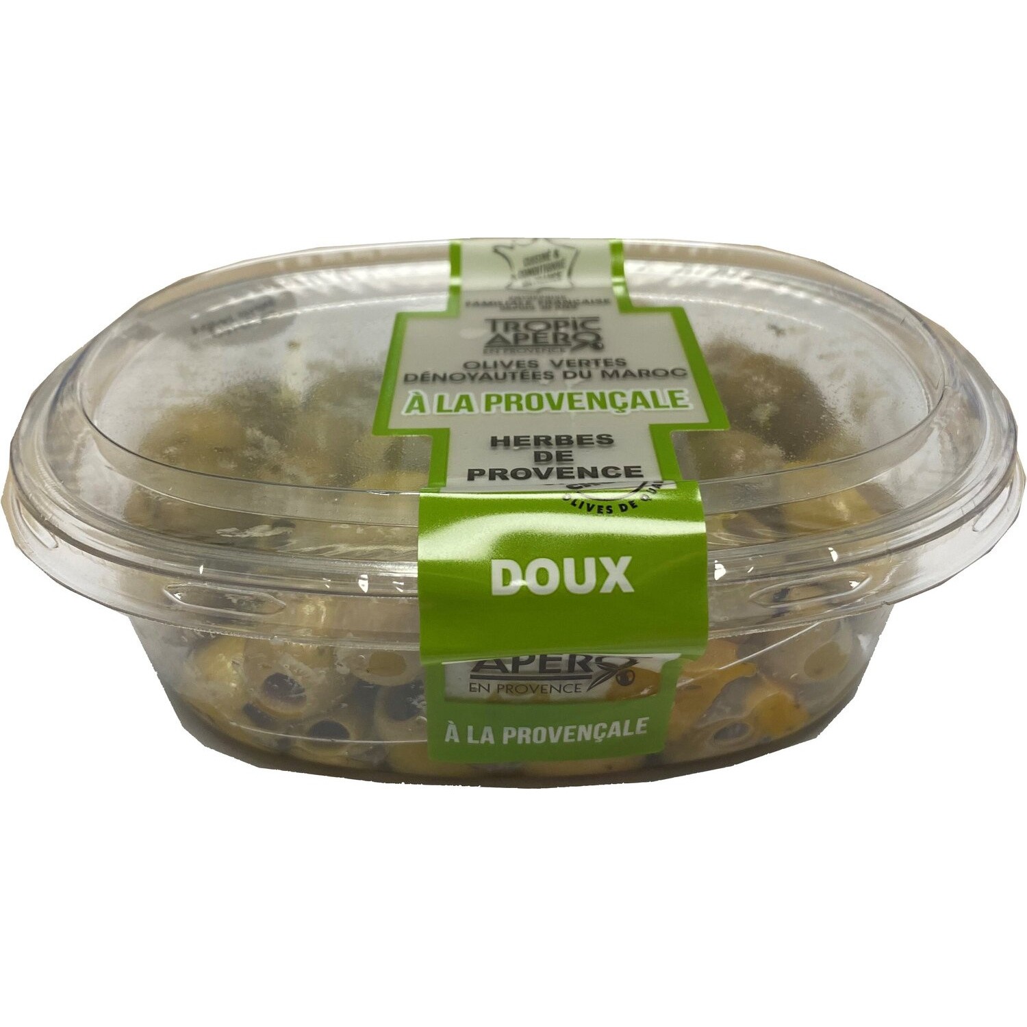 olives vertes. Quantité : 200 g Marque : tropic apéro