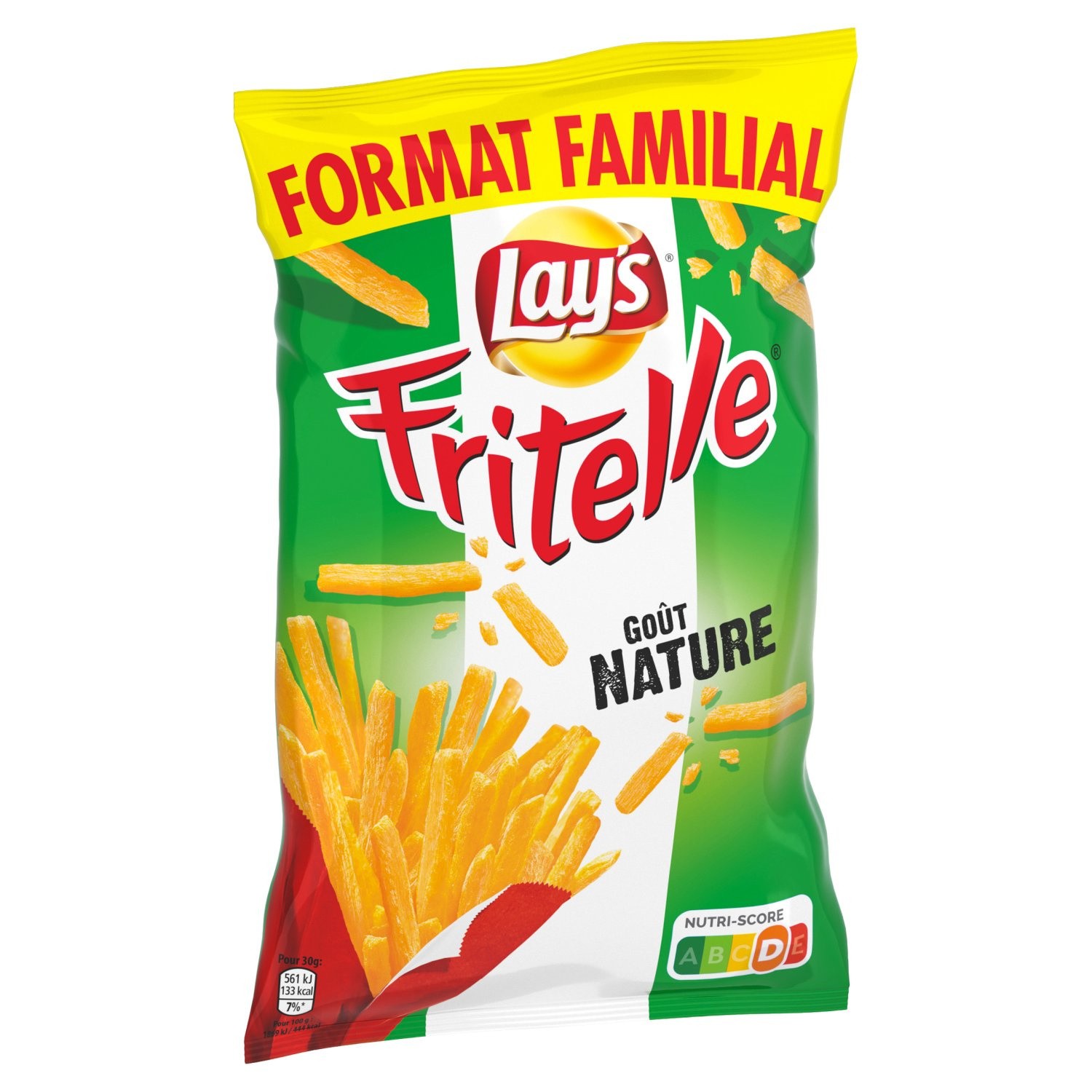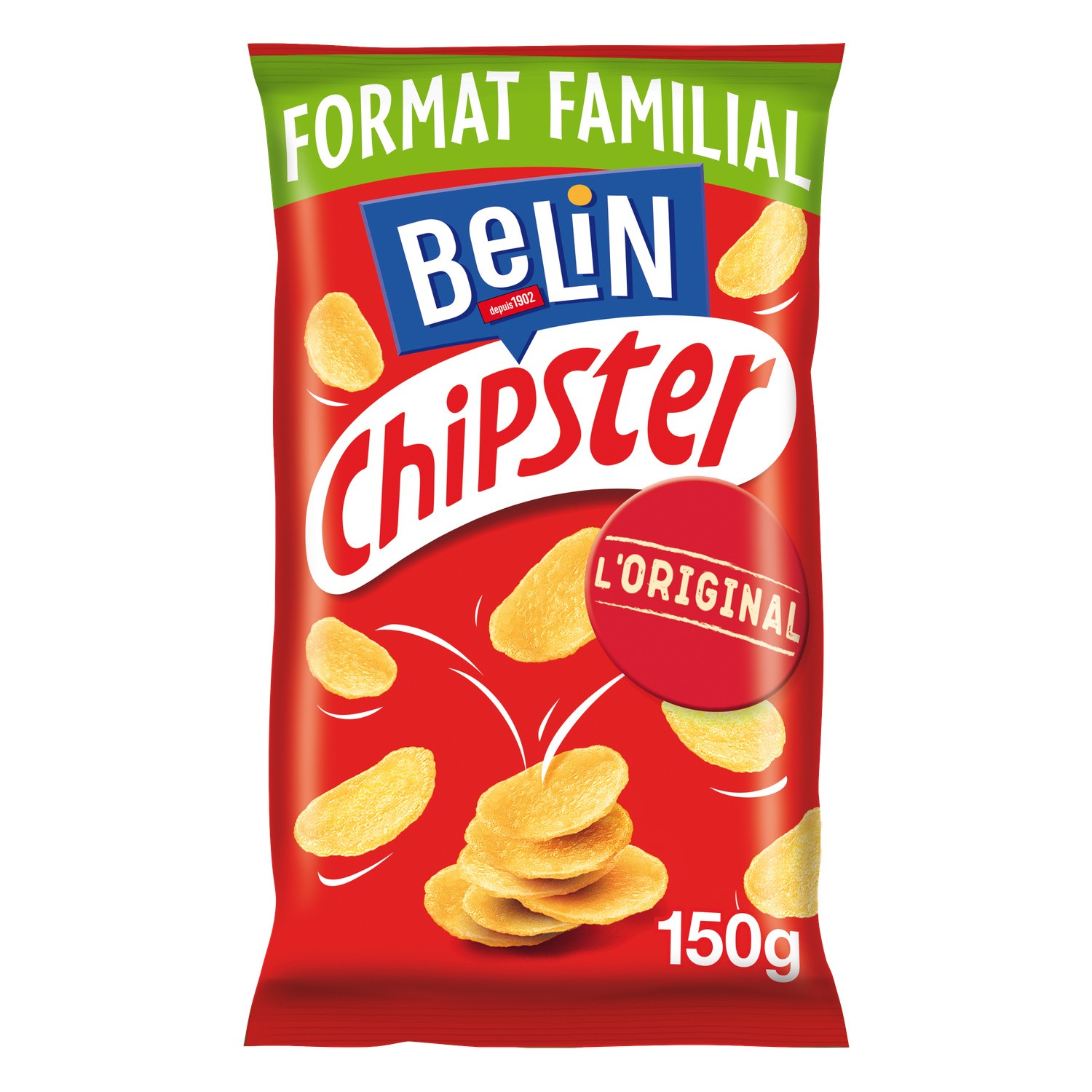 Chipster format familial. Ingrédients : Flocons et fécule de pomme de terre 76,6 %, huile de palme, sel 3,6 %, antioxydant (extrait de romarin), curcuma....