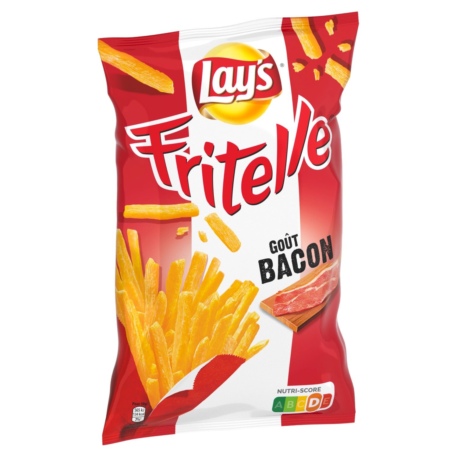 Bâtonnets soufflés à base de maïs et de pomme de terre goût bacon. Ingrédients : Semoule de maïs, poudre de pomme de terre (28%) (dont...