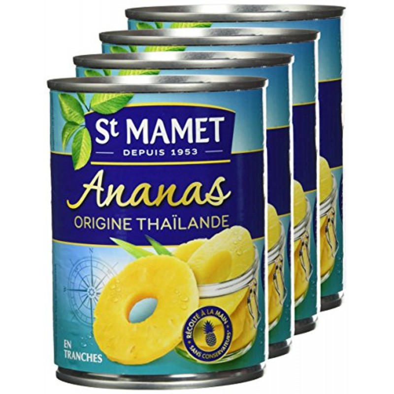 Salade de fruits, fruits au sirop. Ingrédients : Fruits en proportion variable 59 % (ananas, papaye, goyave mangue), eau, sucre, jus concentré de fruit de...