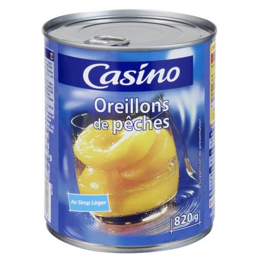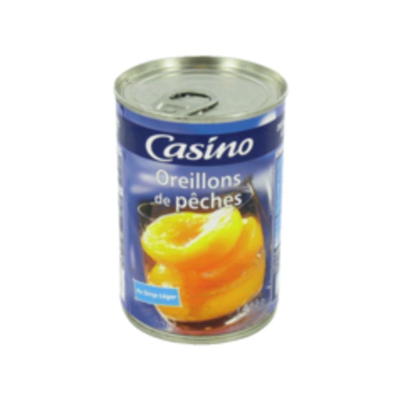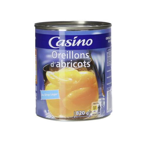 Oreillons d'abricots au sirop léger. Ingrédients : Oreillons d'abricots - eau - sucre Quantité : 850 ml Marque : Casino