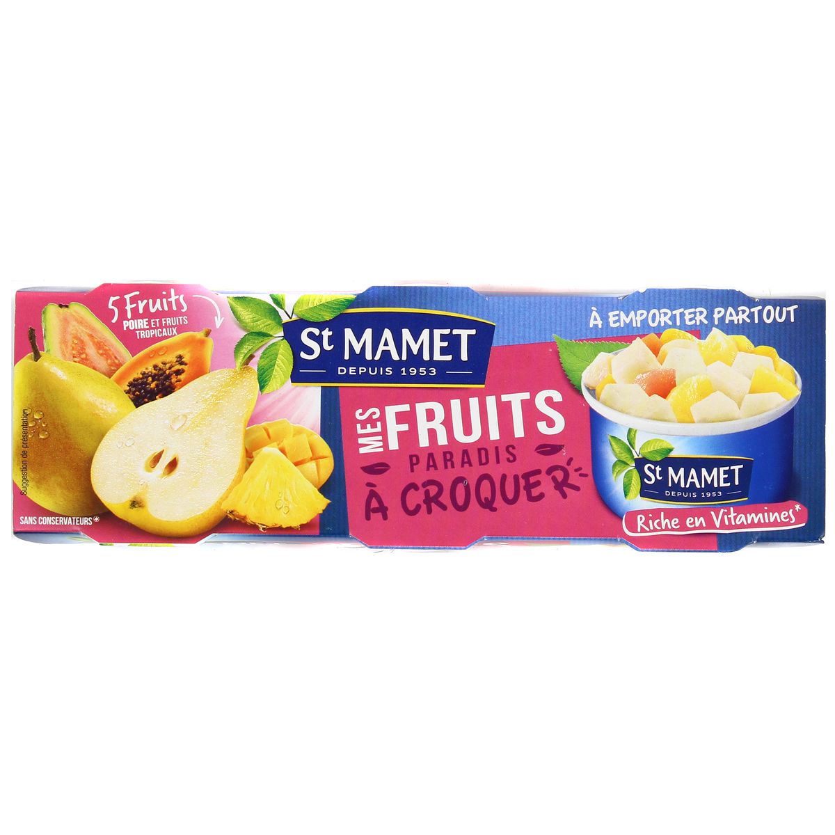 3X1 / 4 Coupe Verger Melange Saint Mamet. Ingrédients : Pêches en cubes (17 à 30%), poires en cubes (17 à 30%), pommes en cubes...