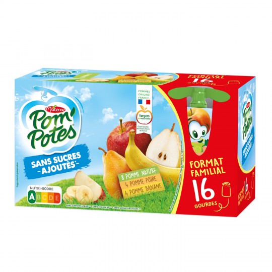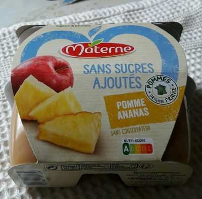 Spécialité de pomme ananas sans sucres ajoutés (contient des sucres naturellement présents) - Compote Pomme Ananas. Ingrédients : Pomme 69,8 % (purée et purée concentrée),...