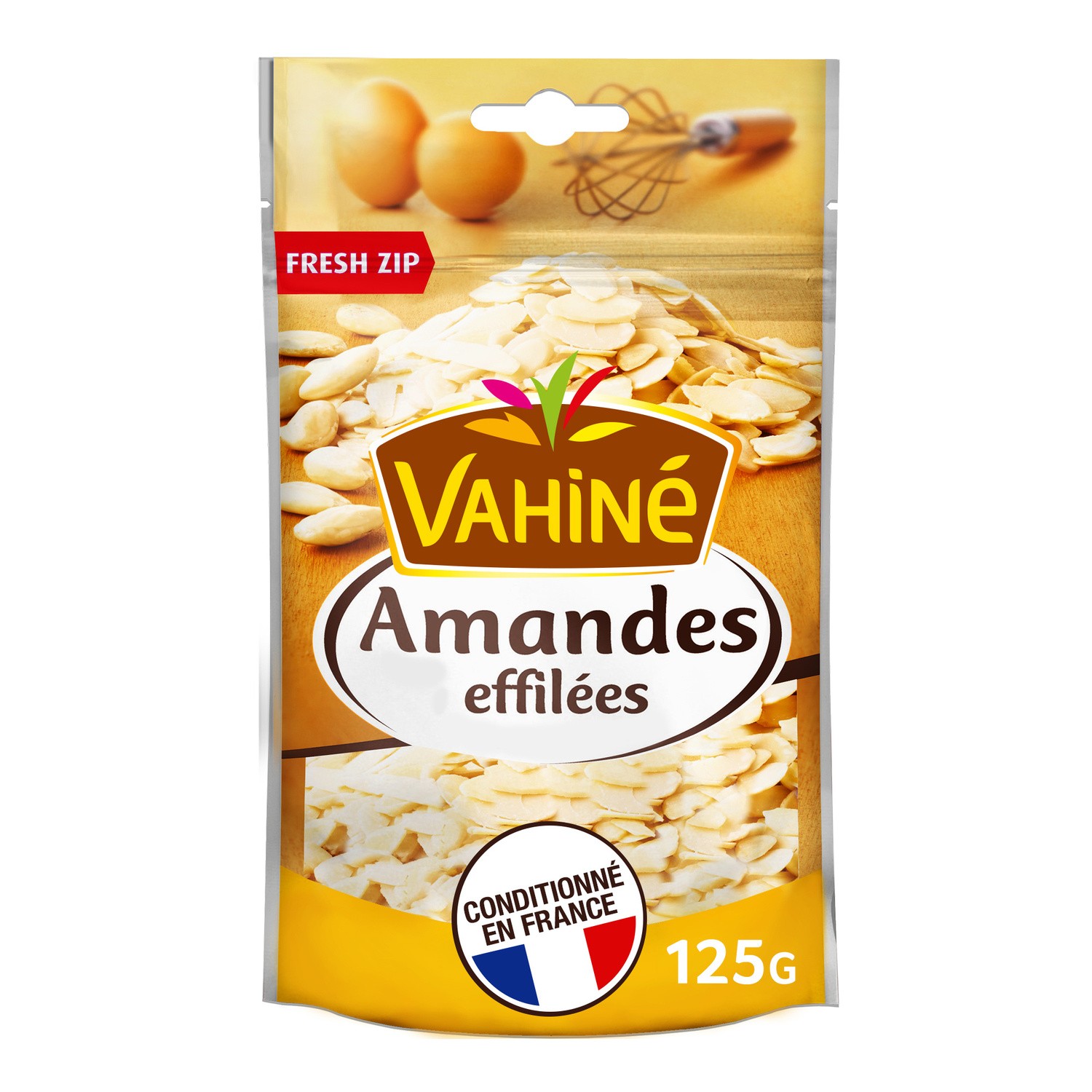 Amandes effilées. Ingrédients : EFFILÉE, : Amande, Peut contenir d'autres fruits à coque, Ce produit a été protectrice, Quantité : 125 g Marque : Vahine...