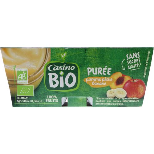 Purée pomme peche banane sans sucres ajoutés* *conformément à la réglementation.