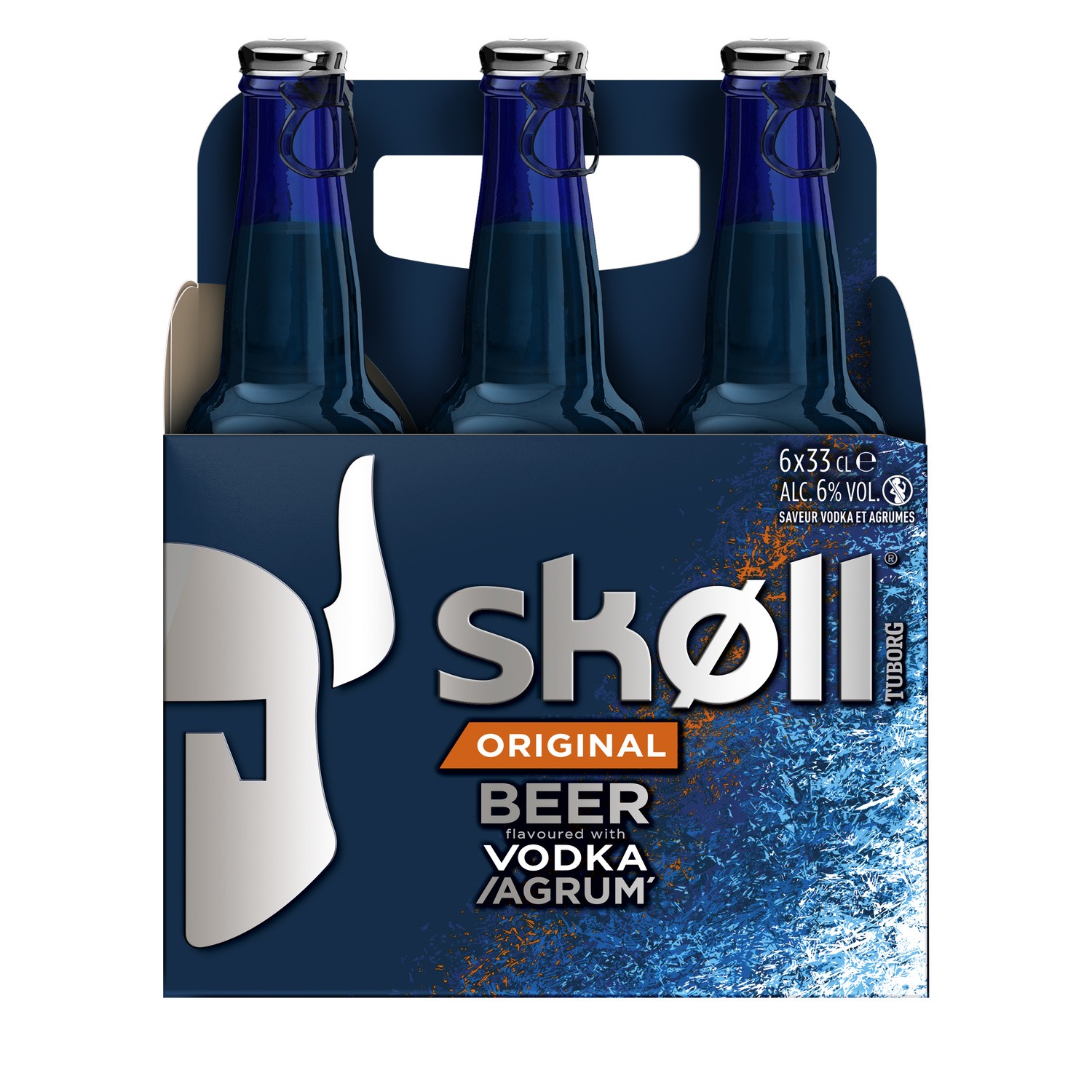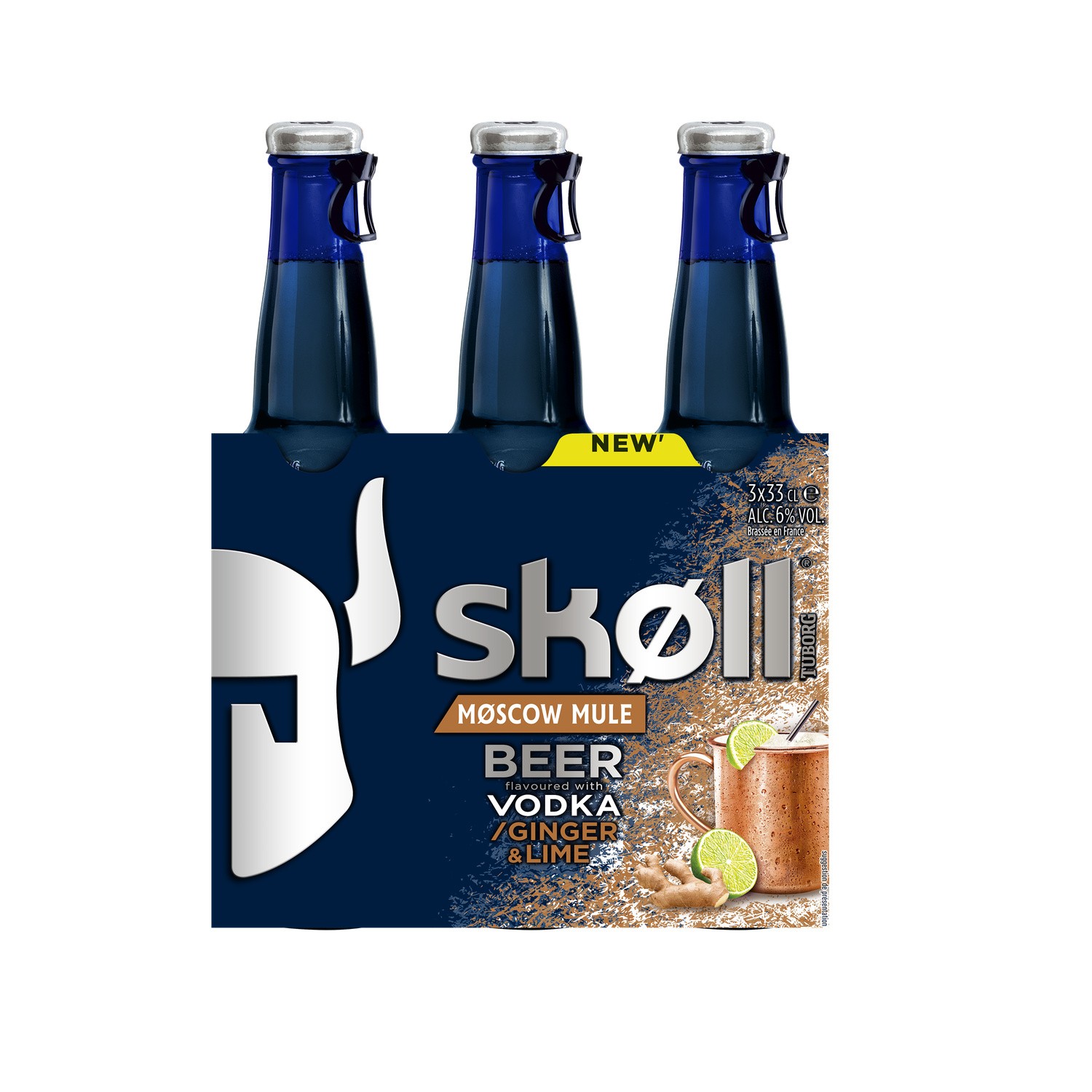 Skøll Ginger & Lime. Ingrédients : EAU, MALT D'ORGE, SIROP DE GLUCOSE, SUCRE, AROME VODKA-GINGEMBRE-CITRON VERT (DONT 60% DE VODKA), ACIDIFIANT : ACIDE CITRIQUE, BLÉ,...
