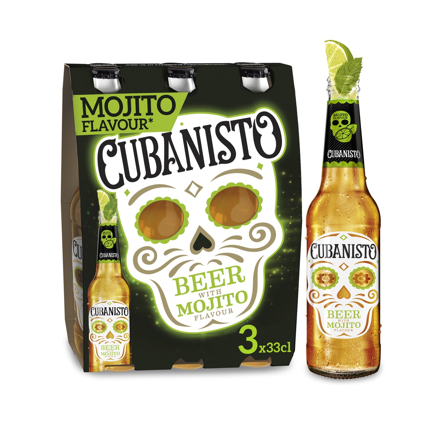 Cubanisto bière mojito 5,9°. Ingrédients : Eau, Malt d'orge, Mais, Arômes naturels de citron vert (0,01%), de citron et de menthe (0,13%), Rhum(0,01%), extraits de...