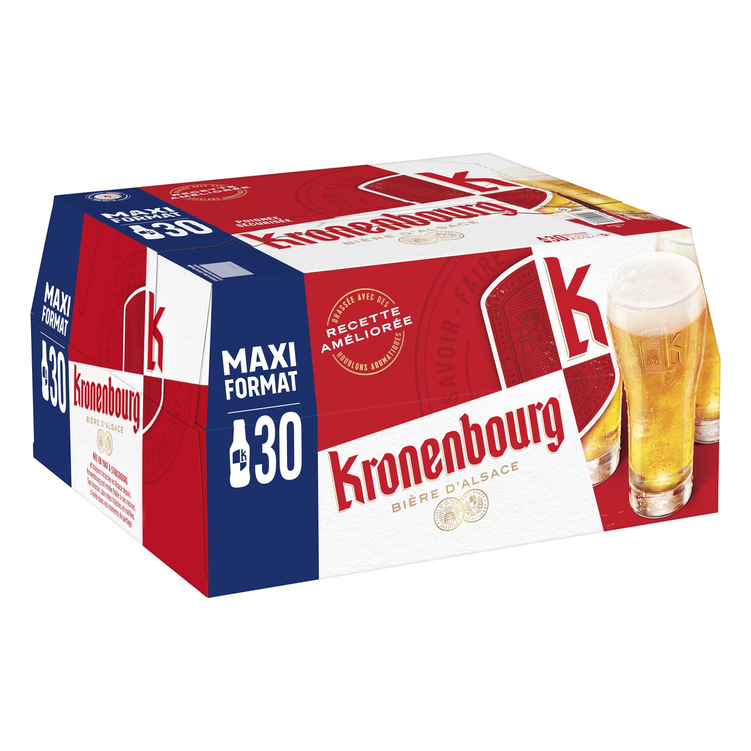 Biere blonde. Ingrédients : bière blonde malt d'orge,blé Quantité : 30 Marque : kronenbourg Origine : France