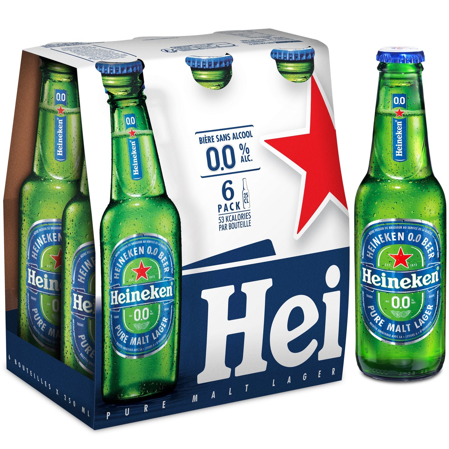 Bière sans alcool. Ingrédients : eau, malt d'_orge_, arôme naturel, extraits de houblon Quantité : 6 bouteilles de 25 cl Marque : Heineken