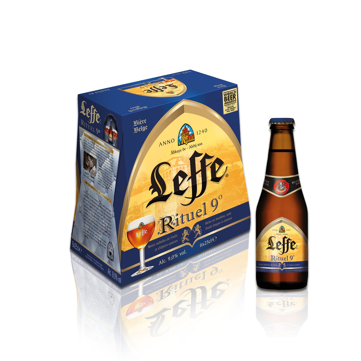 Bière belge de haute fermentation. Ingrédients : Eau, malt d'_orge_, maïs, _orge_, houblon Quantité : 6 * 25 cl Marque : Leffe