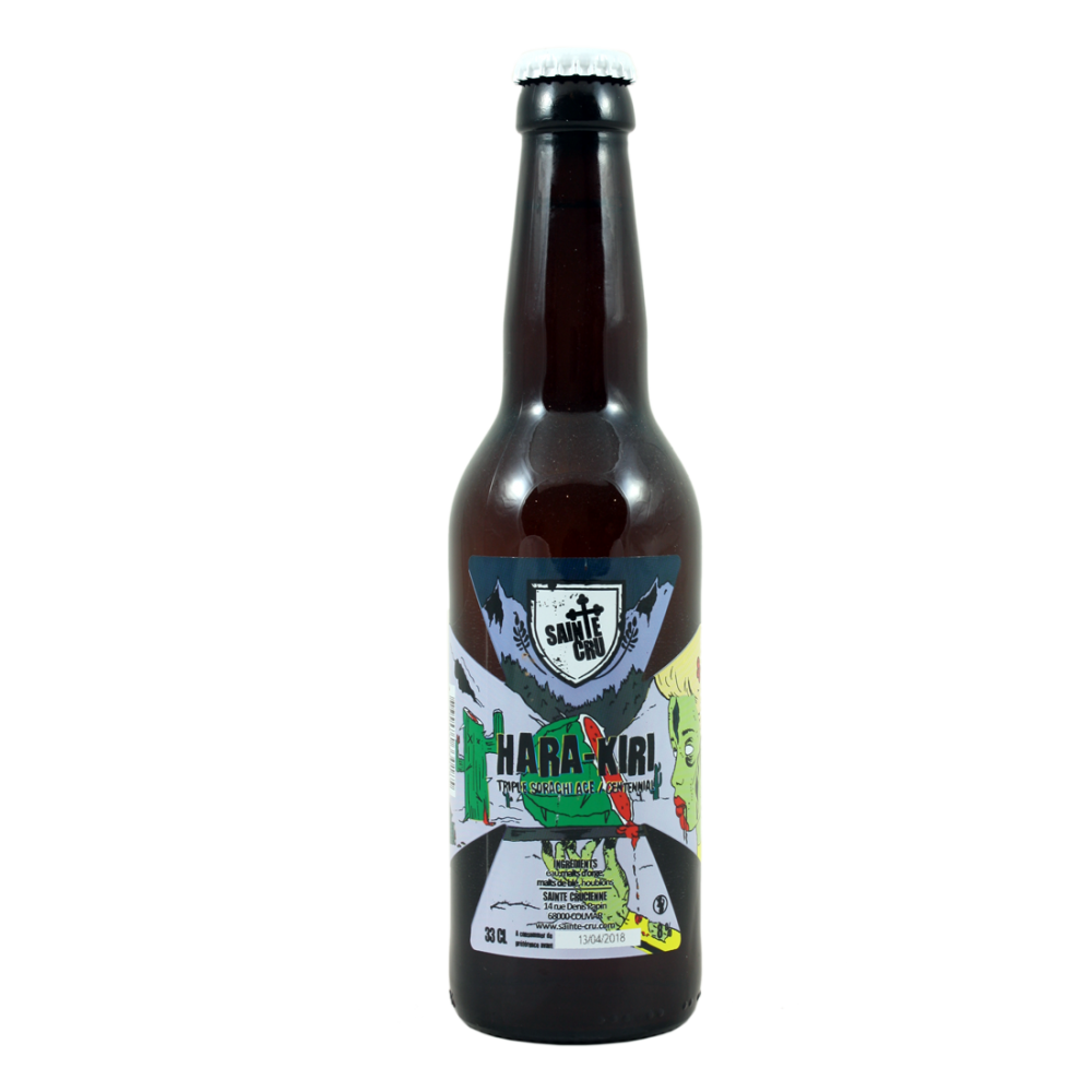 Hara-Kiri. Ingrédients : Eau, malts d'_orge_, malts de _blé_, houblons. Quantité : 33 cl Marque : Sainte-Cru