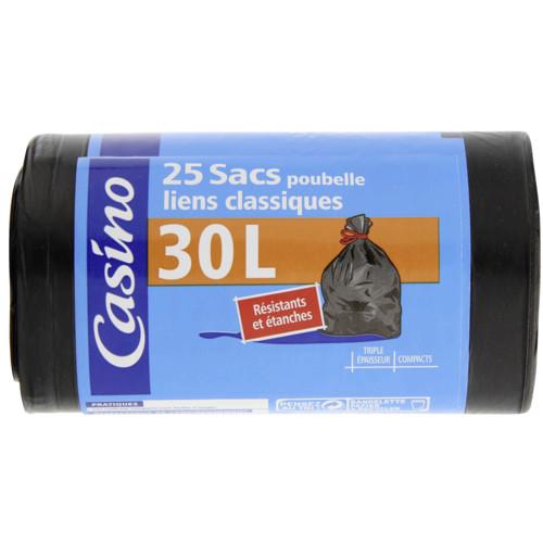25 SACS POUBELLES LIENS COULISSANTS 30L CASINO