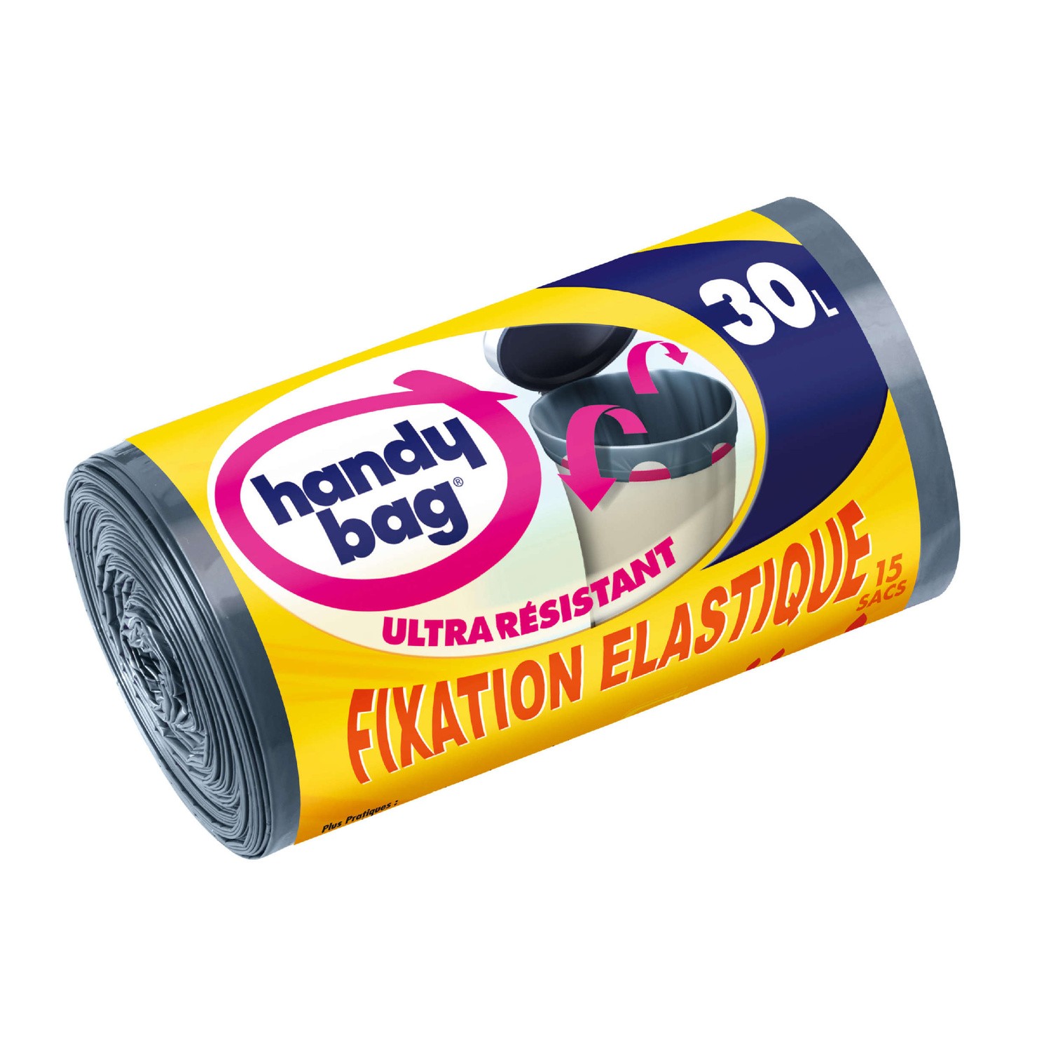 15 SACS POUBELLES HANDYBAG FIXATION ELASTIQUE 30L
