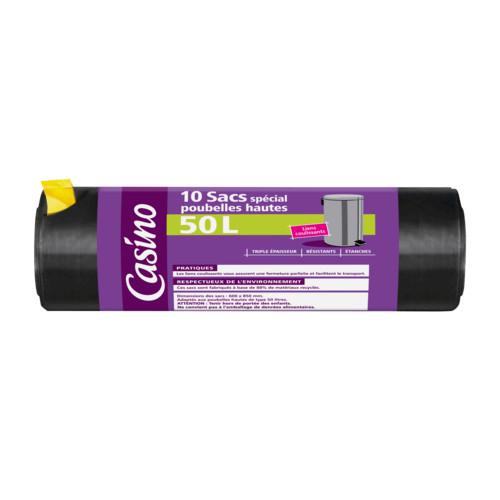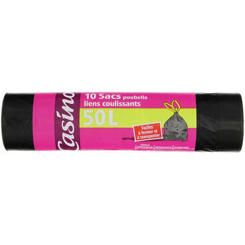 10 SACS POUBELLES 50L LIEN COULISSANT CASINO