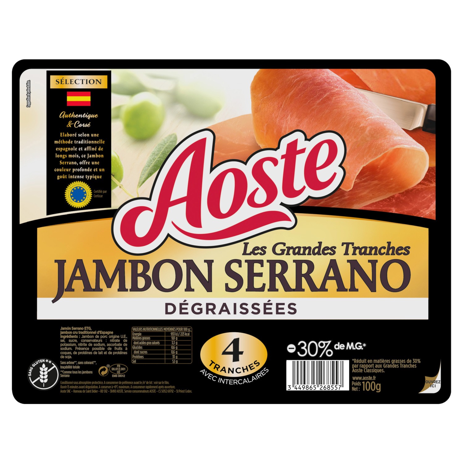 Les Grandes Tranches Jambon Serrano dégraissées - Aoste