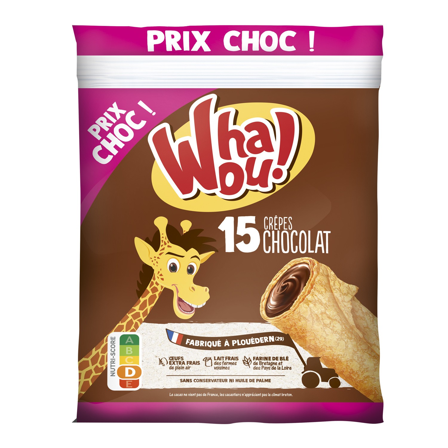 Crèpes au chocolat. Ingrédients : • CRÉPE (62,5%) : _LAIT_ FRAIS ENTIER (367), FARINE DE _BLÉ_ (29%), SUCRE, _OEUFS_ EXTRA-FRAIS (10%), HUILE DE TOURNESOL, _BEURRE_...