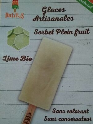 Glaces artisanales. Ingrédients : Lime - 21%, Eau, Sucre*, Dextrose, Guar Quantité : 280 g Marque : Palitos