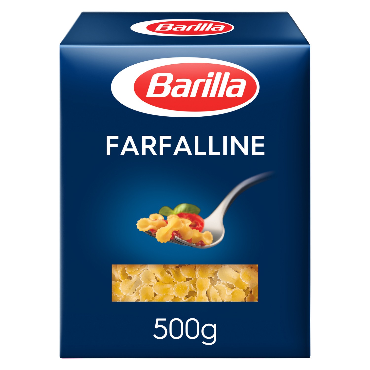 Pâtes Farfalline.Ingrédients : Semoule de blé dur, eau. peut contenir des traces de soja.Quantité : 500 gMarque : Barilla