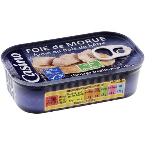Foie de morue fumé au bois de hêtre.Ingrédients : Foie de morue fumé et son huile naturellement libérée, selQuantité : 121 gMarque : Connétable