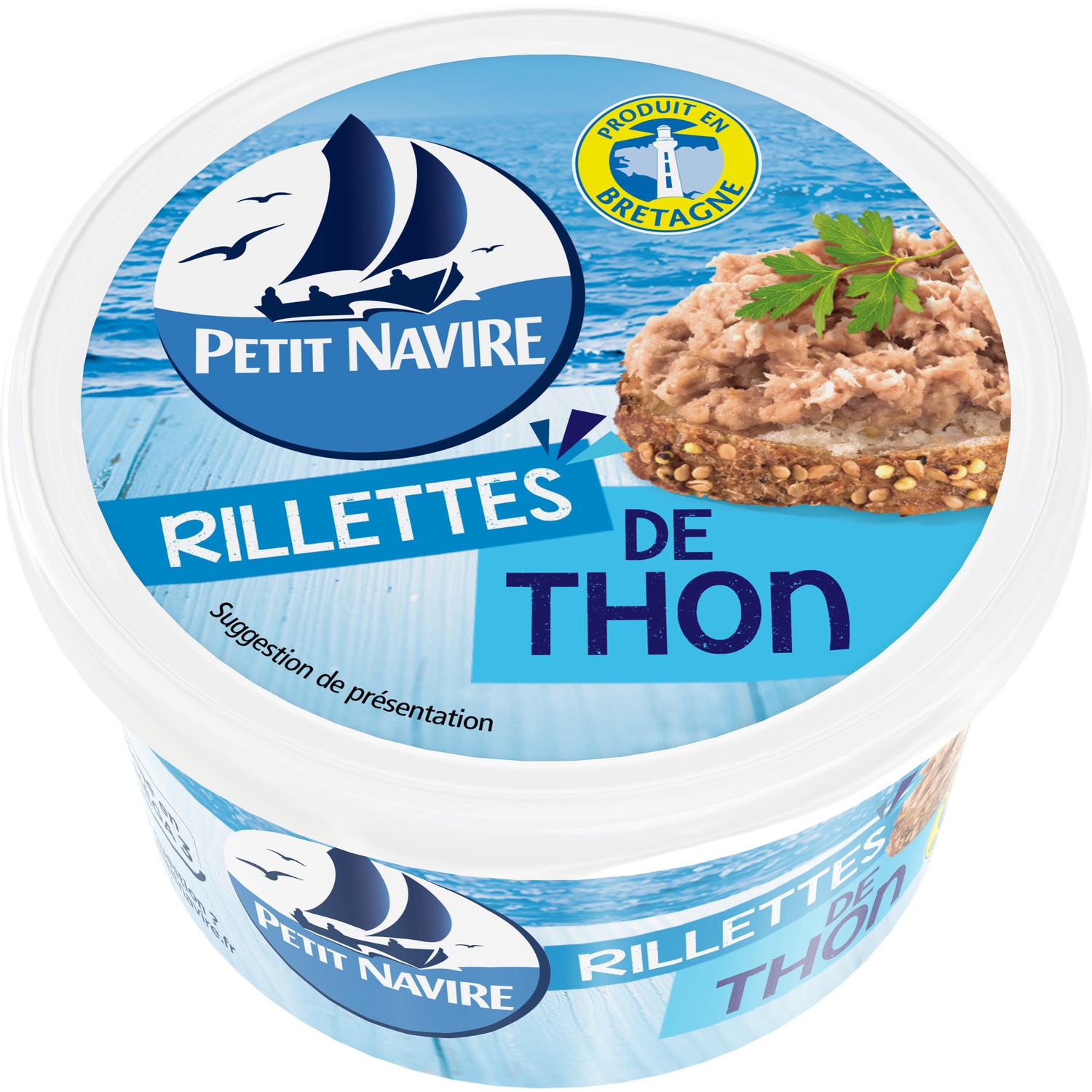 Rillettes de thon aux fines herbes.Ingrédients : _thon_ 60% - eau - huile de tournesol - fibres de canne à sucre - _lait_ écrémé en...