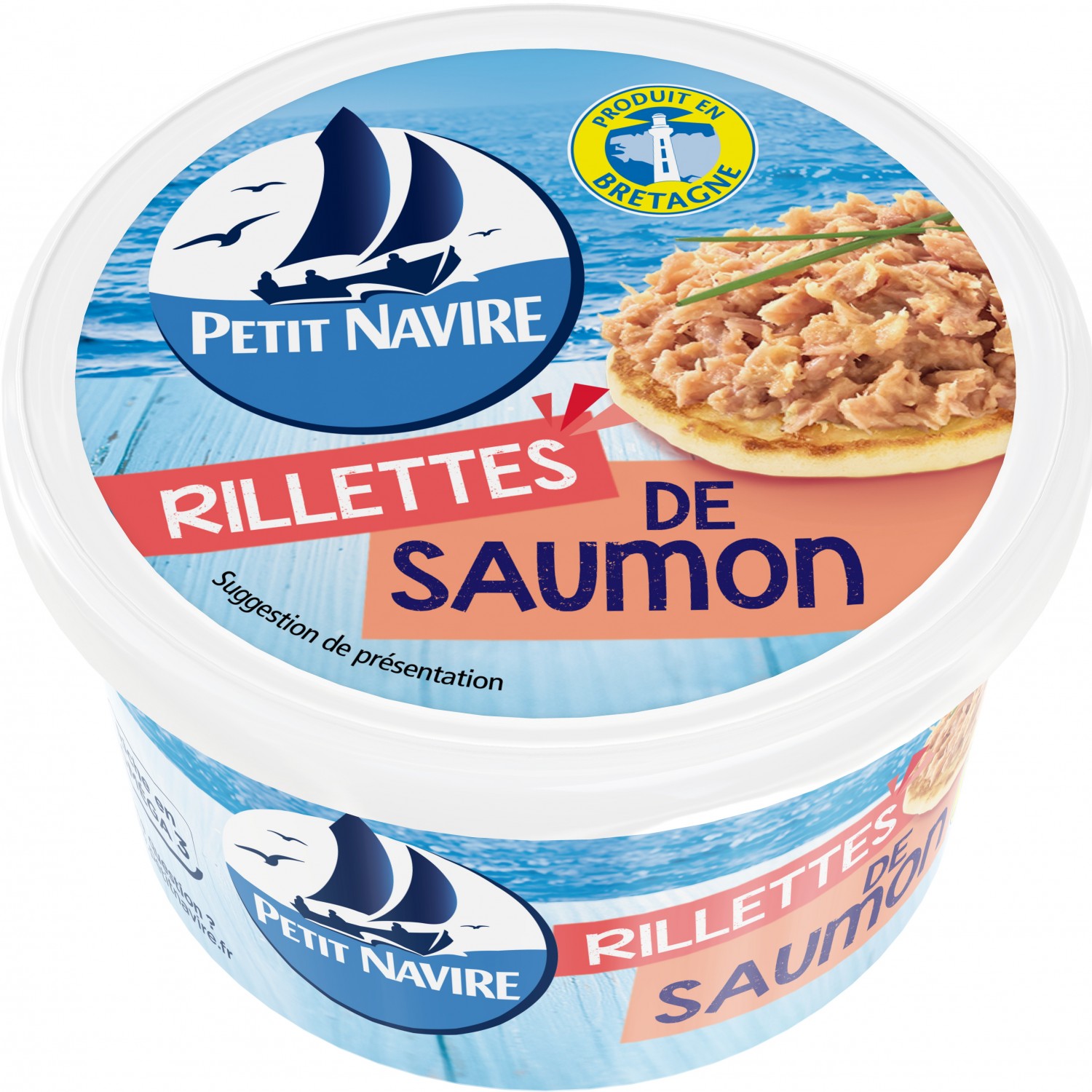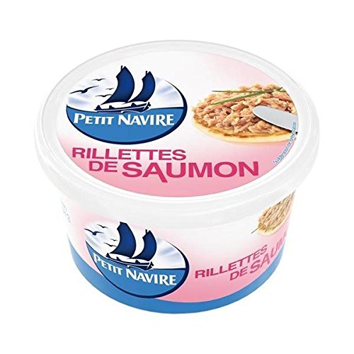 Petit Navire rillettes de saumon.Ingrédients : Saumon rose du Pacifique (39%), huile de colza, eau, thon (12%), fibres végétales, arômes naturels (dont poisson), sel, poudre...