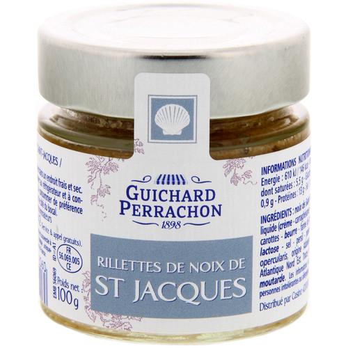 Rillettes de noix de st Jacques. Ingrédients : _noix de saint jacques_* (47.7%) - _crème_ liquide (_crème_, carraghénanes) - _lieu noir_** - échalotes - carottes...
