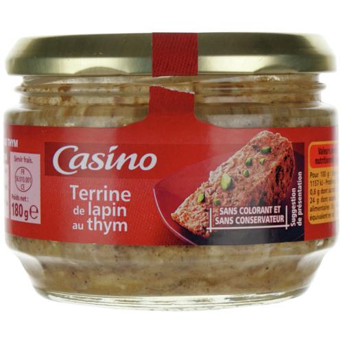 Terrine de lapin au thym. Ingrédients : Foie de porc - gorge de porc (origine : France) - viande de lapin 20% - couenne de...