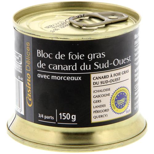 bloc de foie gras de canard du Sud-Ouest avec 30 % morceaux