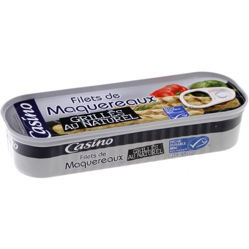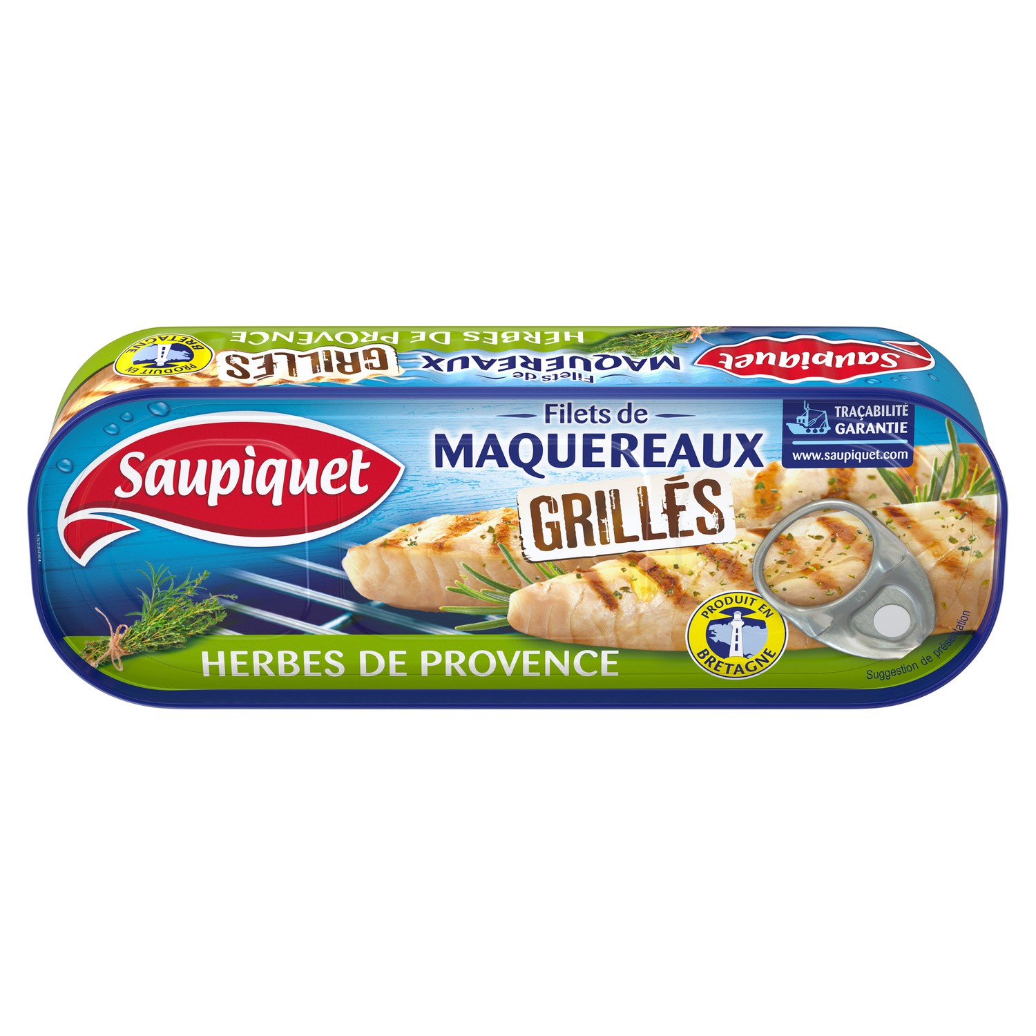 Filets de maquereaux grillés (herbes de Provence).Ingrédients : Filets de maquereaux (85 %), huile de tournesol, herbes de Provence (0.3 %), arôme, sel.Quantité : 120...