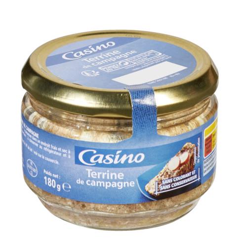 Terrine de campagne. Ingrédients : Viande de porc (origine : France) - foie de porc - gras de porc - couenne de porc - oignons...