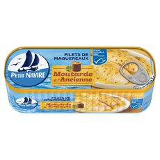 Filets de Maquereaux Moutarde à l'ancienne.Ingrédients : Filets de maquereaux (56%), eau, vinaigre d'alcool, moutarde (6,8%) (eau, graines de moutarde vinaigre d'alcool, sel) huile de...