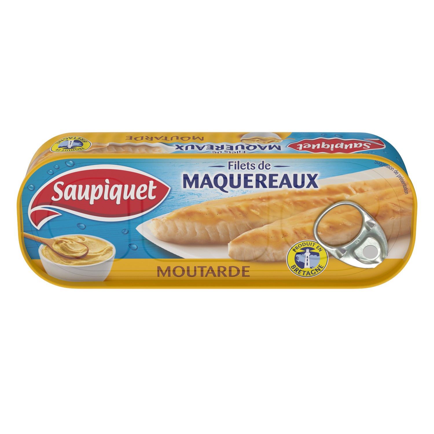 Filet de maquereaux à la moutarde.Ingrédients : Filet de maquereaux 5 8%, eau, moutarde de Dijon 8 % (eau, graines de _moutarde_, vinaigre d'alcool, sel,...