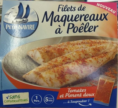 Filets de maquereaux à poêler avec assaisonnement Tomate et Piment .Ingrédients : Sachet contenant le poisson (117.5 g) : Filet de _maquereaux_. Sachet dose d'assaisonnement...