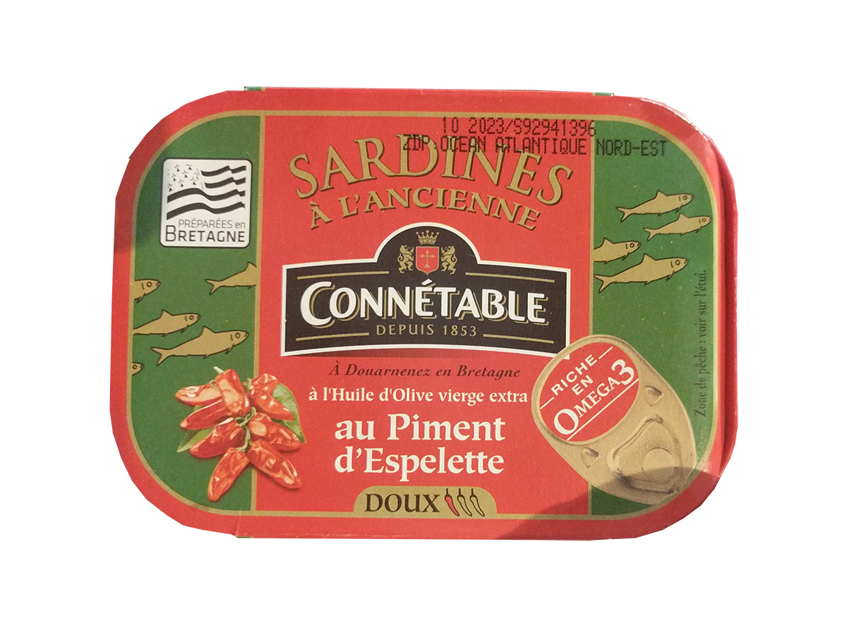 Sardines à l'huile d'olive et au piment d'espelette.Quantité : 174gMarque : Connétable