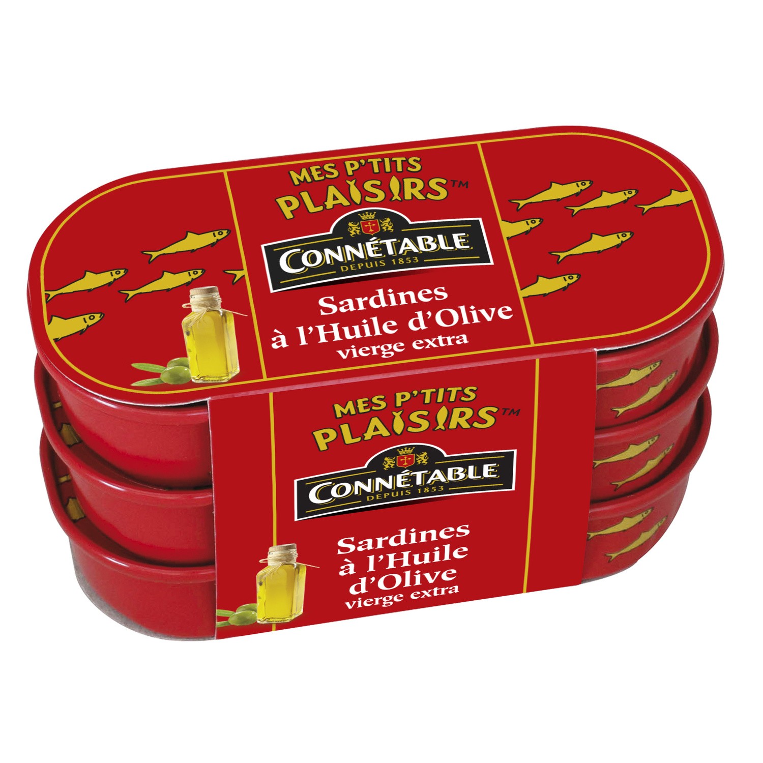 Connétable Les Petites Sardines à l'huile d'olive vierge extra les 3 boites de 41,25 g net égoutté.Ingrédients : Sardines , huile d’olive extra vierze, selMarque...