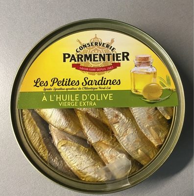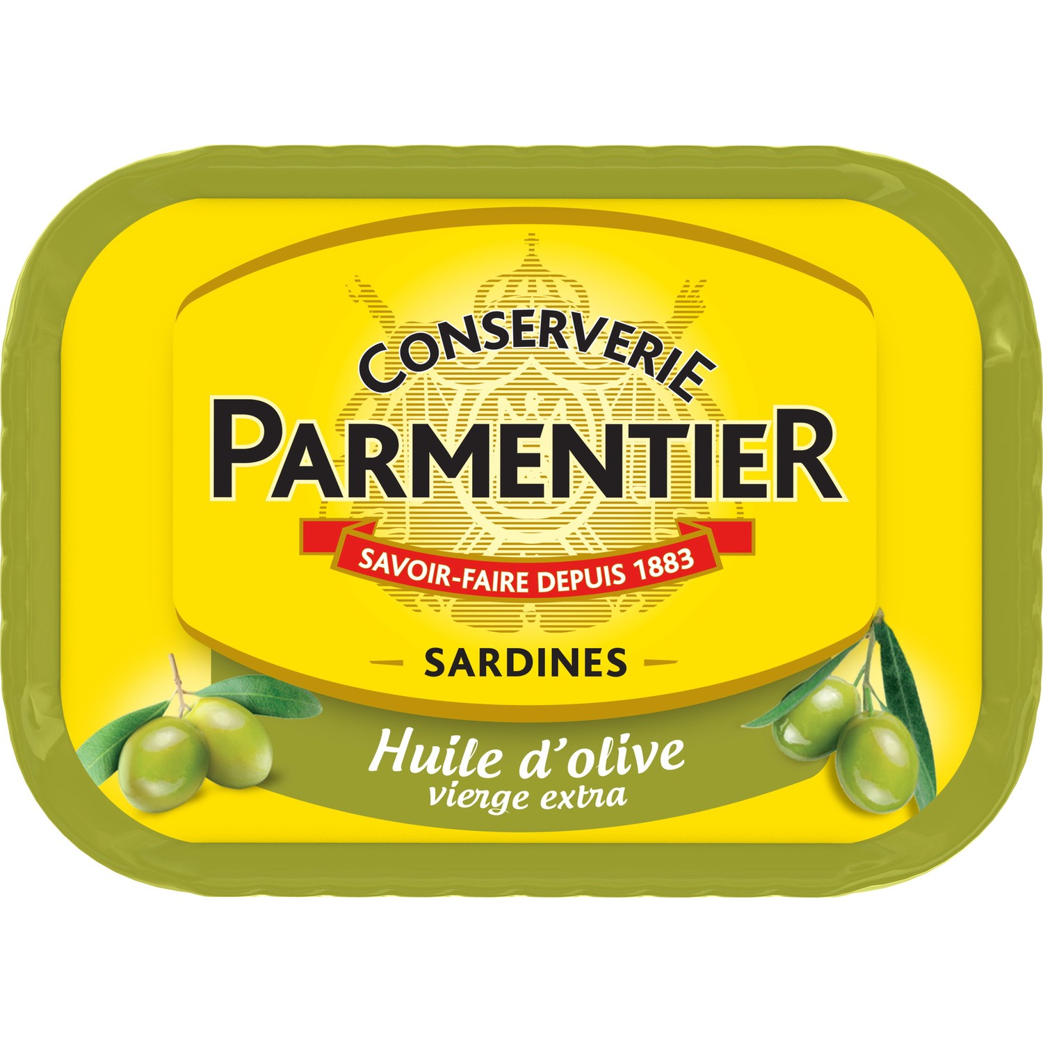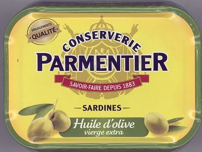 Sardines à l'huile d'olive vierge extra.Ingrédients : _Sardines_ fraîches frites à l'huile de tournesol - huile d'olive vierge extra 19% - sel.Pêché en océan Atlantique...