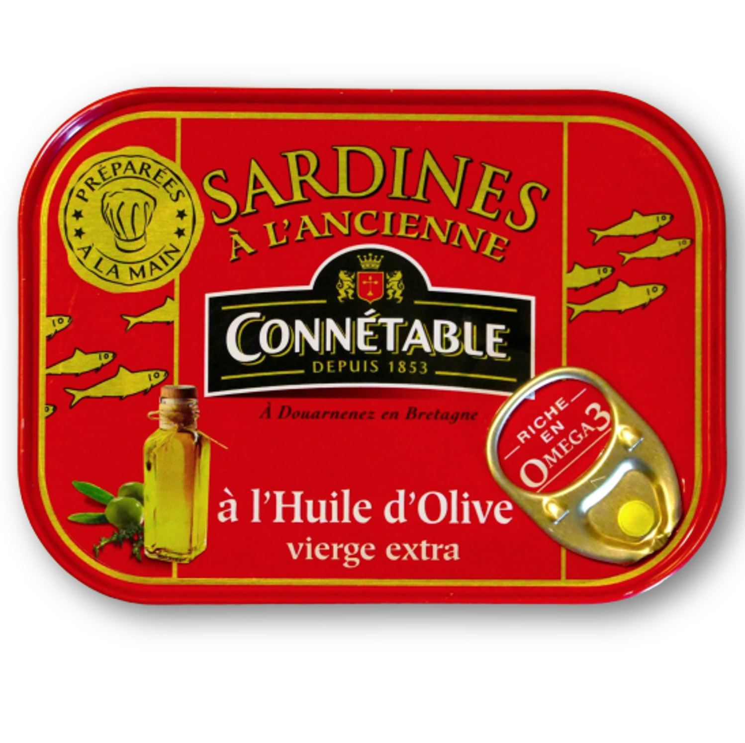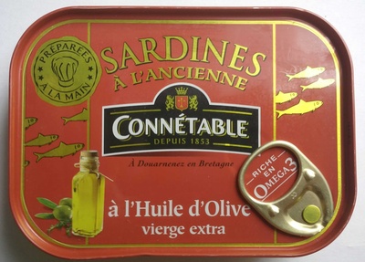 Sardines préparées à l'ancienne à l'huile d'olive vierge extra.Ingrédients : _Sardines_ frites à l'huile de tournesol - huile d'olive vierge extra 19 % - sel.Quantité...
