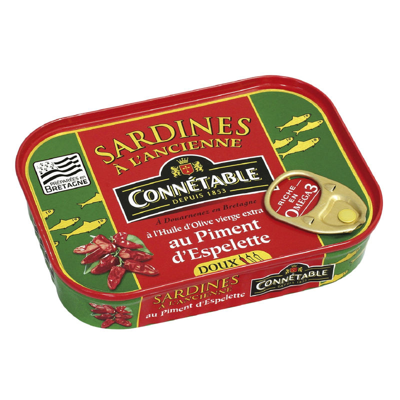Sardines préparées à l'ancienne sans arête à l'huile d'olive vierge extra.Ingrédients : _Sardines_ frites à l'huile de tournesol - huile d'olive vierge extra 19 %...