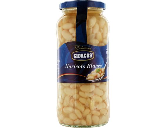 Judión cocido al natural. Ingrédients : haricots, eau, sel, antioxydants : E385, E223 (_sulfite_). Marque : Cidacos
