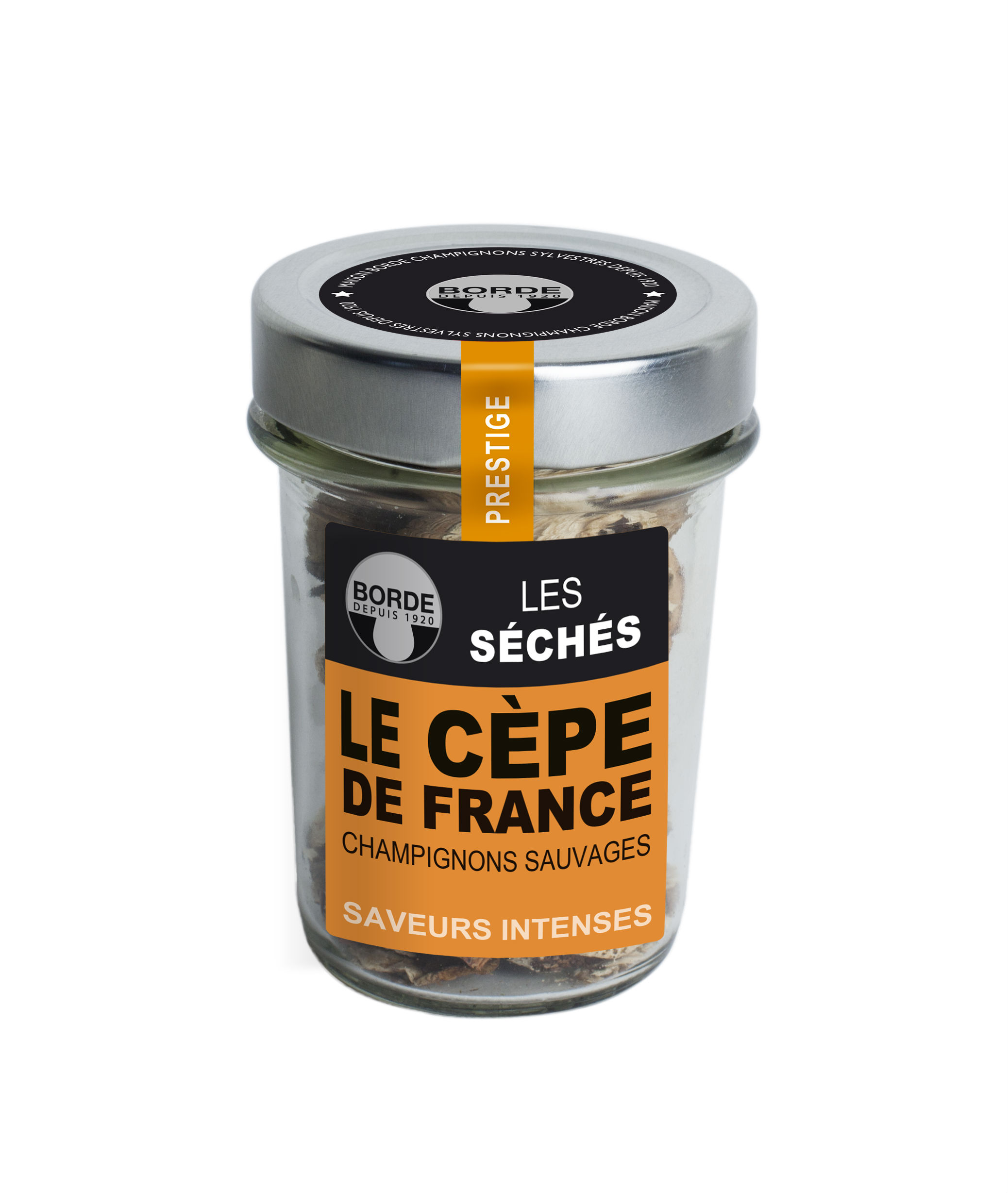 Le Cèpe de France. Ingrédients : Cèpes (Boletus edulis aereus, pinicola, reticulatus). Marque : Borde Origine : France