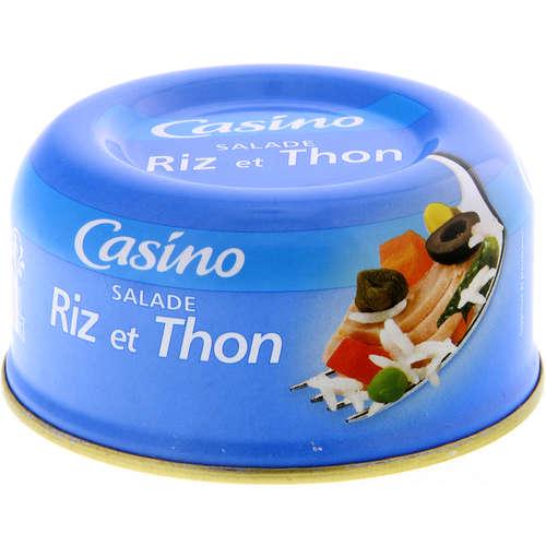 Salade de riz, aux légumes et au thon.Ingrédients : _Thon_ 23% (soit 62,5 g à l'ouverture) - eau - riz Basmati 11% - carottes 8.7%...