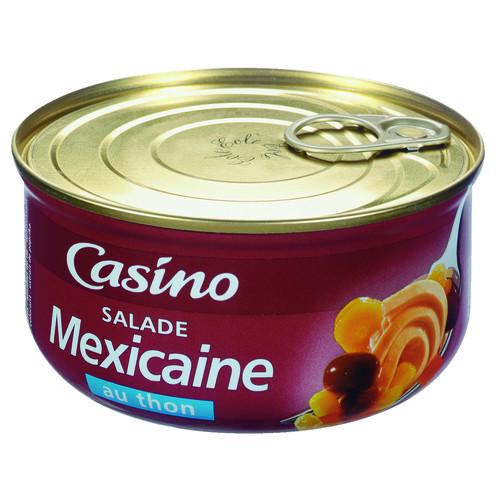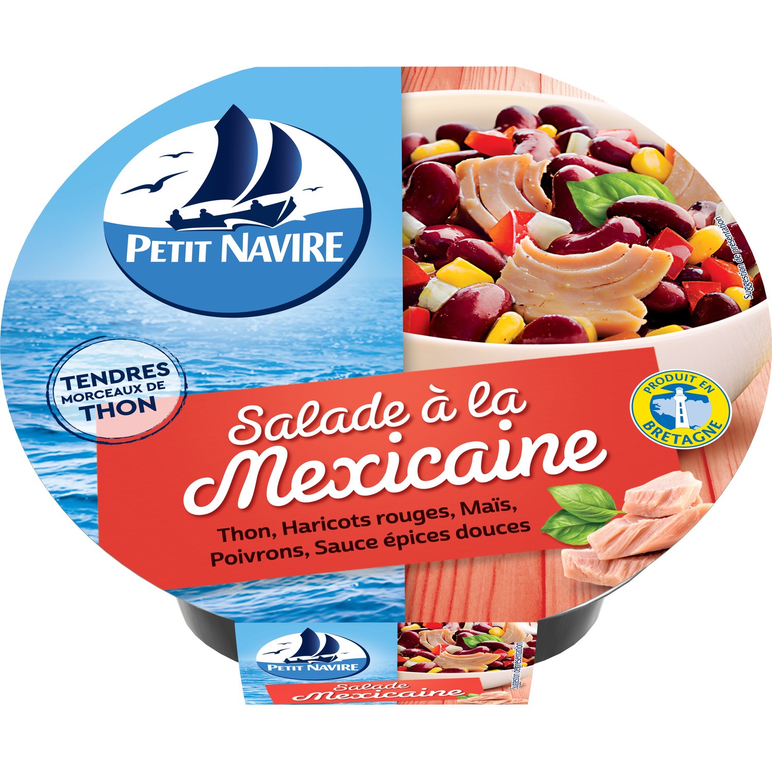 Salade de thon à la mexicaine.Ingrédients : Haricots rouges (24 %), _thon_ (24 %), poivrons rouges (15 %), maïs (14 %), oignons, eau, huile de...