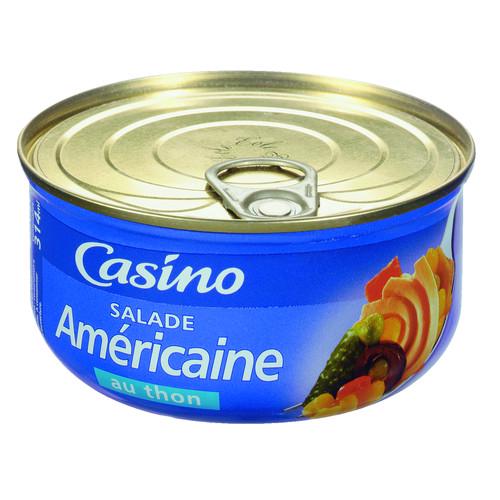 Salade aux légumes et au thon.Ingrédients : _Thon_ 20% (soit 62,5 g à l'ouverture) - eau - pommes de terre 14% - carottes 12% -...