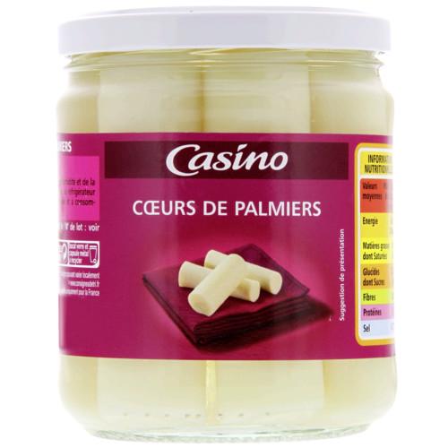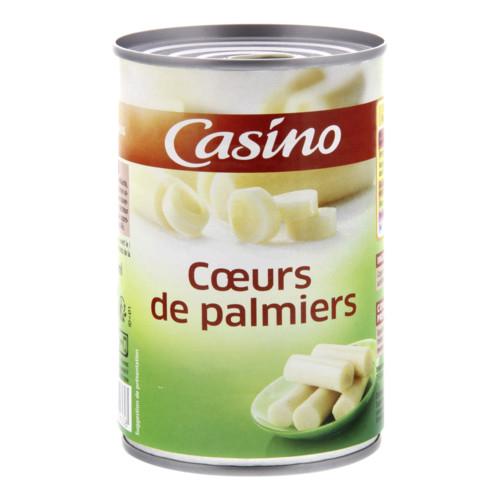 Coeurs de palmiers. Ingrédients : Coeurs de palmiers - eau - sel - acidifiant : acide citrique. Quantité : 400 g Marque : Casino Origine...
