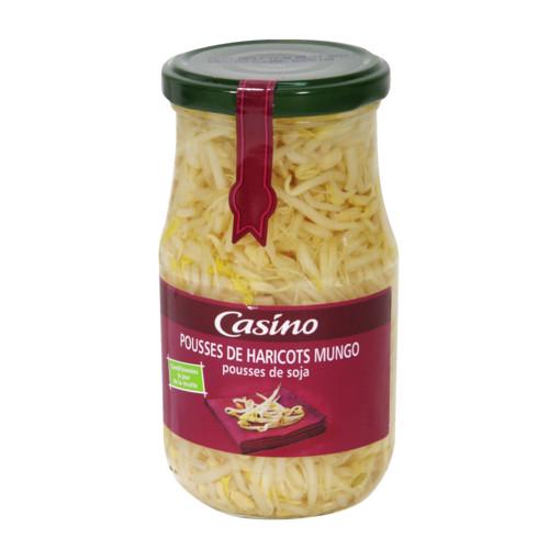 Pousses de haricot mungo. Ingrédients : Pousses de haricot mungo - eau - vinaigre d'alcool - sucre - sel - jus de citron - affermissant...