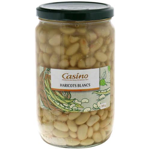 Haricots blancs. Ingrédients : Eau - haricots blancs secs trempés - sel - arôme naturel.traces de _soja_. Quantité : 72 cl Marque : Casino