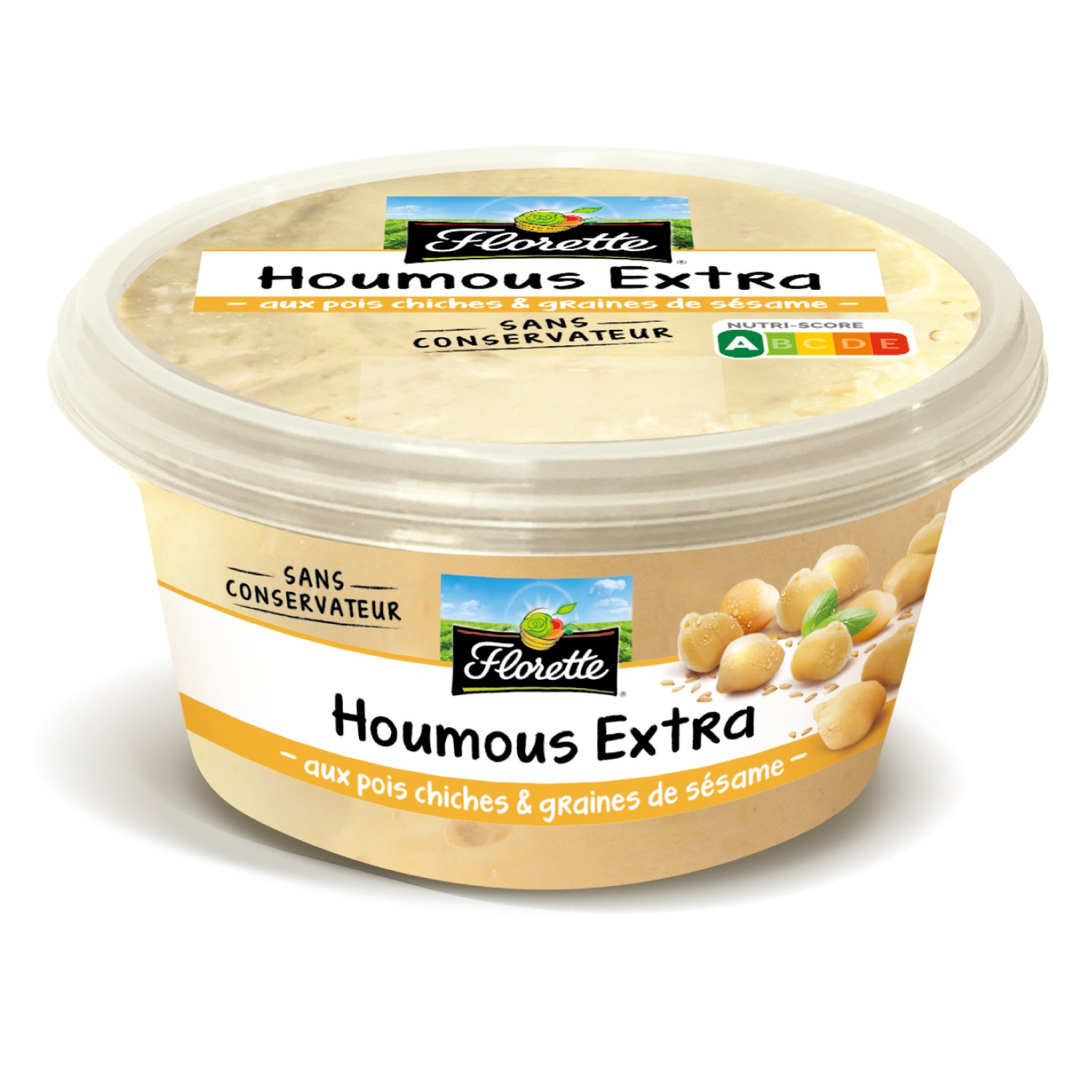 Spécialité à base de pois chiches et de purée de graines de sésame. Ingrédients : Pois chiche 46%, purée de graines de sésame fromage blanc...