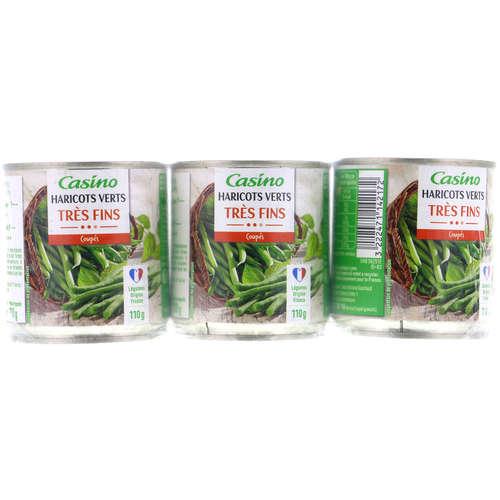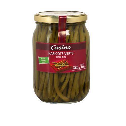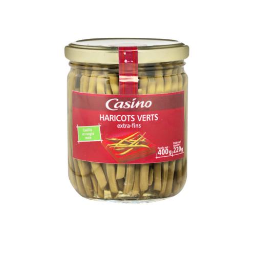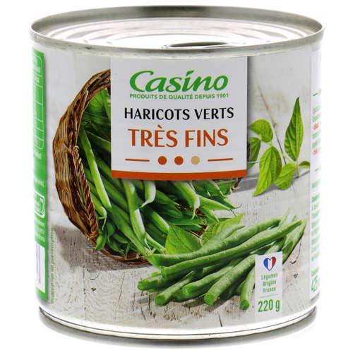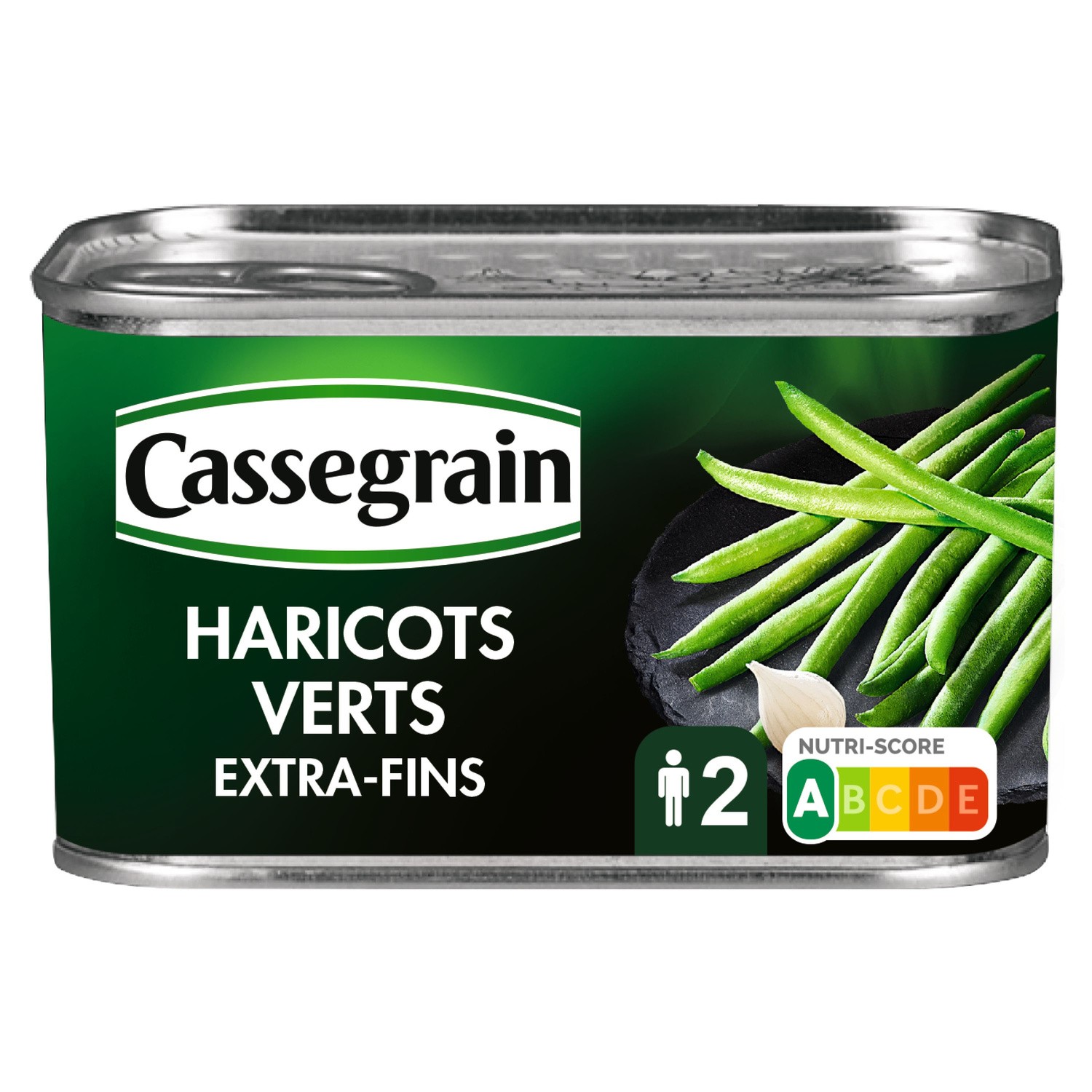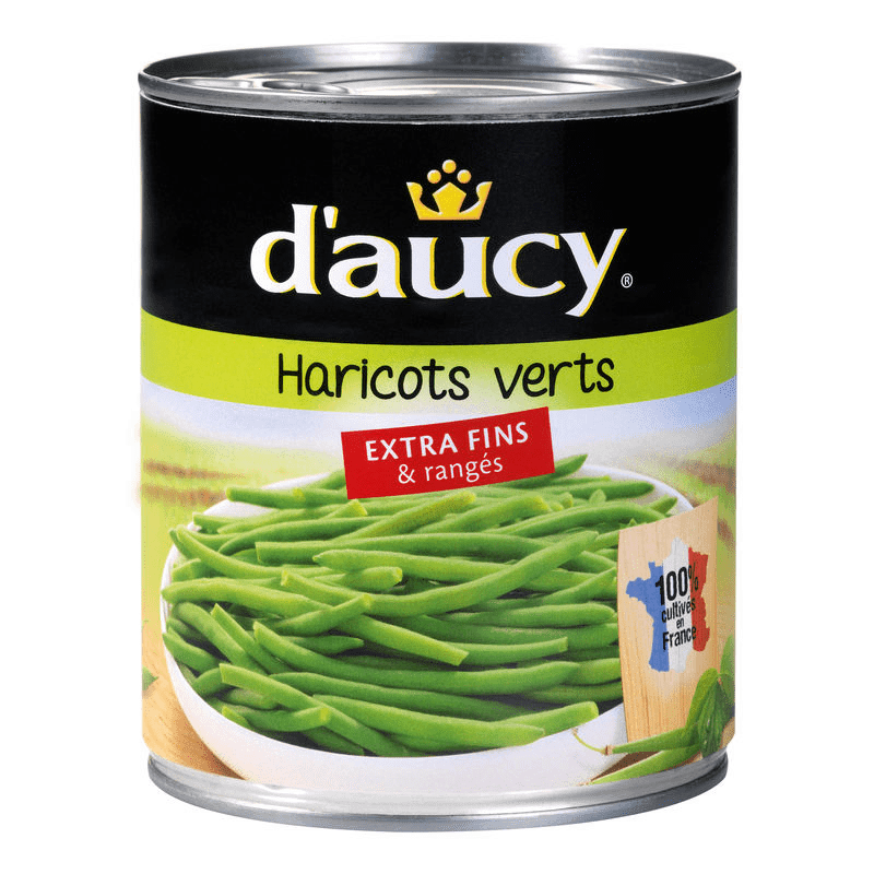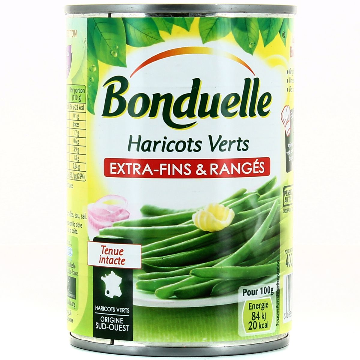 Haricots Verts extra fins. Ingrédients : Haricots verts extra-fins, eau, sel Quantité : 400g, 220g égoutté Marque : Bonduelle Origine : France,Sud-Ouest