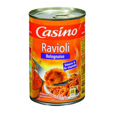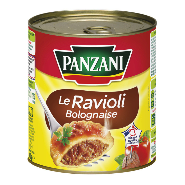 Ravioli au boeuf à la sauce Bolognaise.Ingrédients : Sauce : eau - viande de bœuf 10% - concentré de tomate 7,2% - vin blanc -...