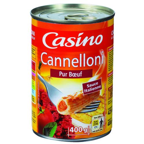 Cannelloni.Ingrédients : _sauce_ (68%) : eau - concentré de tomate 6,5% - oignon - viande de bœuf 2,2% (origine ue) - huile de colza -...
